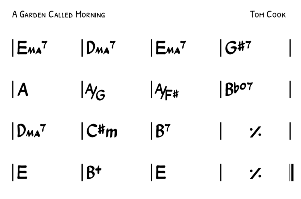 “A Garden Called Morning,” is filled with interesting imagery, mostly associated with drug use and its’ effect on the body and mind. “I’ve lost control of my legs, they take me where they feel,” is an expression of the often-lucid sense of freedom the body gains under the influence of drugs and alcohol, this is paired with the contrast of feeling trapped during a negative experience, “you feel your thoughts are dragging you in, whilst you’re sat there in your chair.” This again, is accentuated in the chord choices and how in the B section there is a progression, A7 to Bbdim7 which implies a sense of danger and mystery. This is an indicator of how word painting has become a concurrent theme in my work.