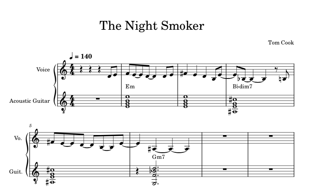 During this song I wanted to channel some of the vocal and chordal choices which would resonate with the likes of Jeff Buckley and Nick Drake. The piece starts with a dissonant and jarring double stop of F and C# over a D major pedal, only to resolve to F# and D, the third and root of our chord I. The dissonance perhaps reflects negative thoughts and how they can stand out in our heads, much in the same way the first chord stands out to the listener.